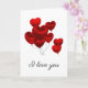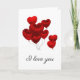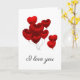Lindo cartão com balões vermelhos flutuantes em forma de coração. A maneira perfeita de dizer Eu Te Amo. Espaço em branco no interior para as suas próprias palavras.
