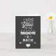 Eu te amo na lua e na design de tipografia de giz branco de trás em um fundo de chaleira de Ricaso