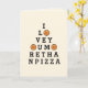 Sirva um pouco de carinho alegre com este cartão ousado de amante de pizza. A frente apresenta "Eu te amo mais que pizza" amassado em uma forma triangular de pizza, completo com mini pizza "O". Dentro, o lado esquerdo apresenta uma torta de pizza de pepperoni saborosa, enquanto a direita tem um texto que diz: "É muito. Feliz aniversário." Clique em "Personalizar este Modelo" para personalizar o texto do dentro para qualquer ocasião - ou nenhum. Perfeito para aniversários, Dia de os namorados, aniversário, notas de amor, ou só porque...