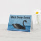 Um evento de cisne negro é um que você não vê chegando. Este termo é frequentemente ouvido no que respeita a acontecimentos econômicos imprevistos e que têm um efeito importante nos mercados financeiros. O termo "cisne negro" significa literalmente uma preferencialmente cisne negra do que os cisnes brancos que estamos acostumados a ver. Uma vez se acreditava que os cisnes negros não existiam até serem descobertos na natureza. Espera-se que um evento de cisne negro seja raro, consequente e inesperado. Contraste com o acontecimento branco do Cisne que se espera que seja certo. Nota: O dentro de legenda deste cartão diz, "Aposto que você não viu ele chegando!". Você pode facilmente mudar isso para uma legenda de sua escolha.