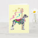 "Você tem uma sela para aquela coisa?" Quantas vezes você ouviu isso? Bem, esta Carrossel Great Dane tem uma sela e é enfeitada com uma fita. Trabalho de arte de Danes-R-Us.