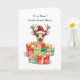 A ilustração encantadora na frente mostra um veado graciosamente cercado por um sortido delicioso de presentes, todos embrulhados em papel festivo. O estilo aquarela do trabalho de arte adiciona um toque de calor e elegância ao cartão, fazer-o uma escolha perfeita para celebrar o vínculo entre membros da família. Este cartão cativante transmite amor e alegria, criando uma experiência memorável para a sobrinha excelente durante as festividades de Natal.