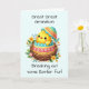 Celebre a Páscoa com seu excelente-excelente-neto da forma mais doce! Esta carta alegre apresenta um pintinho jorrando alegremente de sua casca, cercada por flores vibrantes de primavera que capturam a felicidade da estação. O fundo macio de chá pastel adiciona um toque gentil e festivo, fazer que seja uma marca perfeita para compartilhar o amor e os desejos quentes de Páscoa. Uma maneira deliciosa de fazê-lo sorrir e celebrar a alegria de primavera!