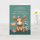 Mande sua neta excelente um pouco de diversão no Natal! Um jovem alce enredado em luzes festivas repousa ao lado de uma árvore de Natal nevada rodeada por presentes, com um cartaz canavial que lia "Joy" acrescentando um toque caprichoso. Dentro, desejos calorosos enchem a estação com amor, risos, e um lembrete do quão especial ela é.