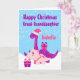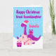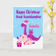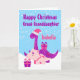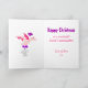 Um cartão de Natal feliz para uma neta excelente Dinossauro, giro, projetado com dinossauros de animação rosa pálido e roxo envoltos por presentes e um fundo de um céu azul com flocos de neve em queda e tipografia festiva decorativa. O dentro à esquerda do cartão tem os sinos de Natal do carregando Pterodactyl Dinossauro rosa giro. Todo o texto pode ser personalizado para atender às suas necessidades como sobre mudar o Feliz Natal para Feliz Natal ou mudar a neta Excelente Niece GodFilha, irmã, filha ou qualquer outra coisa Então personalize com um nome e adicione / altere a mensagem de dentro. !para uma neta Excelente maravilhosa, muito amor". Faz um doce cartão de feriado divertido para qualquer menina que ama dinossauros não importa a idade deles!