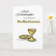Diga à sua neta excelente que ela é amada enquanto você envia parabéns e bênçãos no seu primeiro cartão de comunhão sagrado. Este cartão branco tem um cálice de ouro e uma patente.