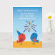 O cartão "Nô Excelente Primeiro 4 de julho Cachorro de Aves Vendo Fogos de Artifício" é uma celebração encantadora do primeiro Dia de Independência de uma menina. O cobrir frontal mostra uma cena adorável com pássaros coloridos em pé, seus olhos largos com maravilha enquanto eles assistem a espetaculares fogos de artifício iluminando o céu.
