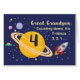 A 4.ª vez está fora deste mundo, especialmente quando é seu neto excelente! Navio de foguetes, planetas e estrelas enchem a frente do cartão com a mensagem como você conta para dizer Feliz Aniversário!