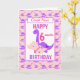 Um cartão de aniversário divertido de 6 meses. Este brilhante cartão de aniversário de meio ano apresenta um desenho animado Purple Brontosaurus e um Tricerátopo Rosa, colocado sobre um fundo de dinossauro rosa e roxo Um adorável design para sua sobrinha ou neta excelente que terá seis meses de idade. A idade de aniversário e a sobrinha excelente na frente do cartão podem ser alteradas para personalizá-la para aquela garotinha especial, e então alterar a mensagem de dentro para personalizar o cartão.
