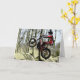 Um cartão de aniversário para fãs e competidores de julgamento de motocicletas com uma foto de ação posterizada de um piloto de motocicletas saltando de rocha para rocha.