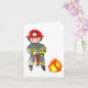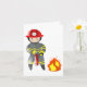 Um bombeiro a apagar um incêndio com um extintor. Este design parece realmente eficaz com este Cartão de Saudação
