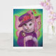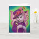 Gato fantasia caprichosa fada em um chapéu decorado com rosa segurando uma varinha de desejos estrela. Prendedores de chapéu de peixe dourado, broche de gato e renda de rosto de gato fazem parte do traje bem elaborado da Fada Madrinha Kitty. Reproduzido a partir da pintura de arte fantasia original de Sue Halstenberg.