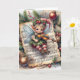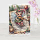 Um elfo caprichoso com asas delicadas toca um violino enquanto sentado em folhas de música cercado por decorações de Natal.