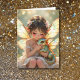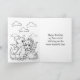 Fairy themed birthday card with a cute fairy holding her little green baby dragon. Her hair is adorn with flowers and she has pretty translucent pearlescent wings. Inside is a coloring page.