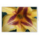 Close up do lírio de dia amarelo com obscuridade - centro vermelho
