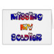 Estes desaparecidos meu design de Solider são grandes para quando seu soldado está ausente durante uma mobilização. Deixado todos saiba que você falta seu soldado! Este design é grande para miúdos e os adultos igualmente e fazem uma grande ideia do presente.