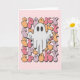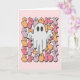 Este divertido e festivo design de Halloween apresenta uma ilustração clássica de fantasma na frente e no centro, rodeada pela palavra "Assustador" repetida em uma fonte ousada e borbulhante. O texto é disposto em camadas em cores vibrantes e inspiradas no retro, como tons suaves de rosa, roxo e laranja, criando um contraste divertido com a figura simples e branca do fantasma. Os olhos pretos sem expressão do fantasma adicionam um toque de charme assustador, enquanto a tipografia ondulada e empilhada dá ao design um clima alegre e nostálgico.