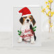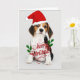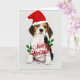 Adorável filhote de beagle pronto para o Natal, vestindo seu chapéu vermelho de Papai Noel.Feliz Natal!