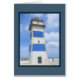 Design com tema náutico com decoração de farol com cor d'água em quadro azul escuro. É possível mudar a cor de fundo e adicionar uma diferente à design com sua escolha.