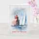 Cartão Farol vermelho e veleiro 54.o aniversário