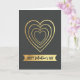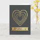 This greeting card features four nested hearts centered on a deep charcoal background, with a distressed gold-foil look that catches the light like tiny flecks of metal ❤️. The layered heart shapes feel like they’re gently glowing outward, giving the design a cozy, romantic pull without needing any characters at all 🥰. The dark backdrop stays smooth and even, making the gold tones look richer and more intimate, like candlelight against a night sky. Beneath the hearts, a horizontal gold banner stretches across the card and visually “holds” the message in place. The text reads “HAPPY Valentine’s DAY,” with “HAPPY” and “DAY” in a classic serif style while “Valentine’s” is in a flowing cursive-like letterform, all set in gold. The words sit centered on the banner, framed by pointed ends that angle outward to the left and right. Fine speckling and worn edges in the gold texture appear on both the hearts and the banner, adding depth against the charcoal field.