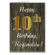 Cartão Faux Wood, Faux Dourado 10º Aniversário + Nome Per