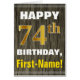 Cartão Faux Wood, Faux Dourado 74.º Aniversário + Nome