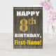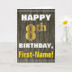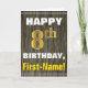 Cartão Faux Wood, Faux Dourado 8.º Aniversário + Nome