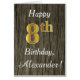 Cartão Faux Wood, Faux Dourado 8.º aniversário + nome per