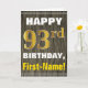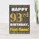 Cartão Faux Wood, Faux Dourado 93º Aniversário + Nome