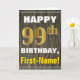 Cartão Faux Wood, Faux Dourado 99º Aniversário + Nome