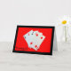 Uma fotografia de quatro cartas de jogar - um 2 de espadas, 3 de corações, 3 de pinos e 4 de ouros, é o assunto do meu "Turning 12 is a Big Deal!" As quatro cartas, que totalizam 12 pontos, aparecem bem sobre um fundo vermelho brilhante.