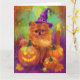 Cartão Feiticeira De Dia das Bruxas E Abóbora De Pomerâni