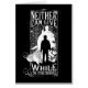 Uma profecia temida que conecta o Lorde das Trevas Voldermort com nosso herói Harry Potter. 'Nenhum pode viver enquanto o outro sobreviver' ' uma revelação assustadora ilustrada em uma silhueta sombria com esses famosos personagens de livros infantis. Uma exibição de fundo escuro e legal com o poder mágico de dar vida a essa citação de Harry Potter com as bruxas e magos que a inspiraram.