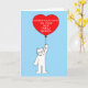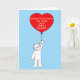 Um grande gatinho macio branco guardara um grande vermelho, o balão dado forma coração que escreveu nele "parabéns em seu membro da família novo".