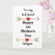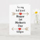 Um cartão feliz do 1º Dia das Mães para uma amiga, que você pode personalizar facilmente com o nome dela. Características setas cintilantes com corações. Dentro deste cartão do 1º Dia das Mães para a melhor amiga há uma mensagem sincera, que você também pode alterar facilmente. A parte de trás deste cartão moderno do primeiro Dia das Mães apresenta a mesma seta e corações onde você pode personalizar o ano.
