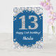 Feliz Cartão Azul de Aniversário de 13, Azul de Prata, com nome personalizado. Para mais personalização, clique no botão "Personalizar" e use nossa ferramenta de design para modificar este modelo.