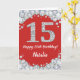 Cartão Feliz 15 Aniversário Vermelho e Silver Glitcard
