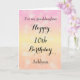 Uma bela e feliz carta neta de 16 anos, que você pode facilmente personalizar com o nome dela. Este cartão de aniversário da neta tem um design com fundo em uma rosa claro, amarelo-claro e laranja-claro. Você também pode personalizar a mensagem de aniversário dentro do cartão, se quiser.