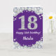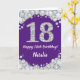 Cartão Feliz 18.º aniversário, Roxo e Placa Leve Prateada