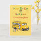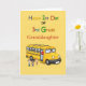 Uma carta perfeita para a sua neta no seu 1rua dia de escola no 3º ano, com um ensolarado ônibus escolar amarelo com crianças a conselho e crianças à espera de entrar. Arte original de barramento escolar por deliciosos rabiscos, arte original infantil por Primsy Resale e MarloDeeDesigns.