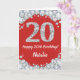 Cartão Feliz 20 Aniversário Vermelho e Silver Glitcard