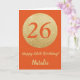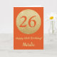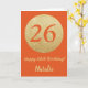Cartão Feliz 26.º aniversário Laranja e Dourada carta com