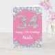 Cartão Feliz 34.º Aniversário, Rosa e Silver Glitter Card