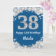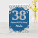 Cartão Feliz 38.º Aniversário, Azul e Silver Glitter Card