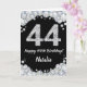Cartão Feliz 44 Aniversário Negro e Silver Gliter Card