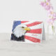 Apresentando uma águia careca americana e uma bandeira. Deseje um feliz 4 de julho para seus amigos e vizinhos.