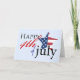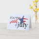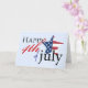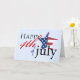Cartão de saudação de 5" x 7" com uma imagem de uma estrela de bandeira dos Estados Unidos e "Happy 4 de julho" em letras vermelhas e azuis em azul claro. O sentimento personalizável de dentro diz "Vamos festejar como se fosse 1776!" Ver confete correspondente, adesivo redondo, vinheta de vinilo cortada por medida e papel de embalagem. Veja toda a coleção do Cartão Saudação do Dia de Independência na categoria CARDS & STICKERS na seção HOLIDAYS.