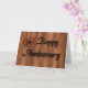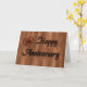 Cartão de aniversário gravado em madeira.