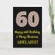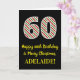 A frente desta divertida e simples carta de saudação de aniversário de 25 de dezembro, tematizada no Natal, apresenta um grande número "60", com um padrão de listras vermelho/branco/verde. Também apresenta a mensagem "Feliz 60º aniversário e Feliz Natal", e um nome personalizado. O fundo da frente é preto colorido. O dentro apresenta uma mensagem de saudação de aniversário personalizada, ou talvez possa ser apagado e deixado o vazio se uma mensagem for escrita manualmente. Um cartão de aniversário personalizável como este pode ser uma maneira divertida de reconhecer o sexagésimo aniversário de alguém que também cai na 25 de dezembro (Dia de Natal). [~Z0000405]